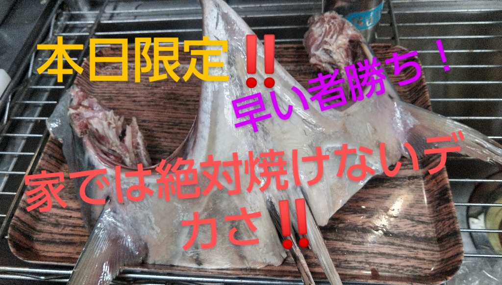 めちゃくちゃデカイカマ焼き‼️本日限定です!ご自宅ではおそらくこんな大きさの焼き物は出来ないはず⁉️ めったに無い機会なので是非ご賞味ください🎵 海鮮カマ焼き‼️日本酒にもご飯にもあいますよー!