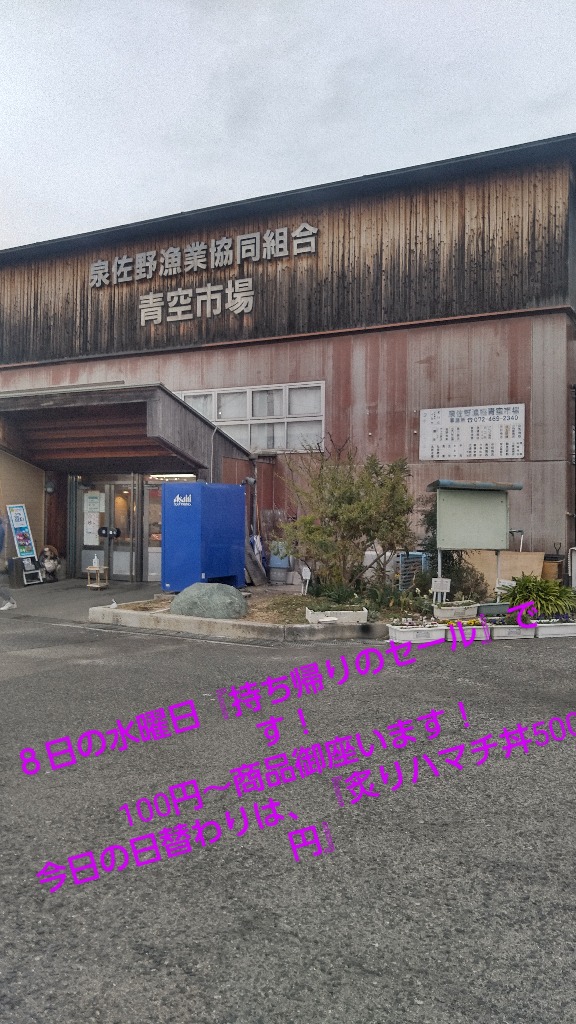 泉佐野漁港で仕入れた新鮮な海鮮を激安でテイクアウト提供さして頂きます✨